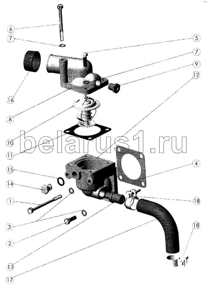 Каталог запасных частей к технике: ММЗ Д-245.30Е2-469. Установка термостата
