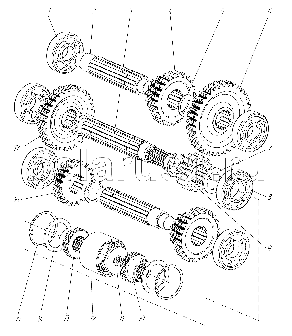 | 17 | МВГ-12.02.695 | Шестерня ведущая промежуточного вала |