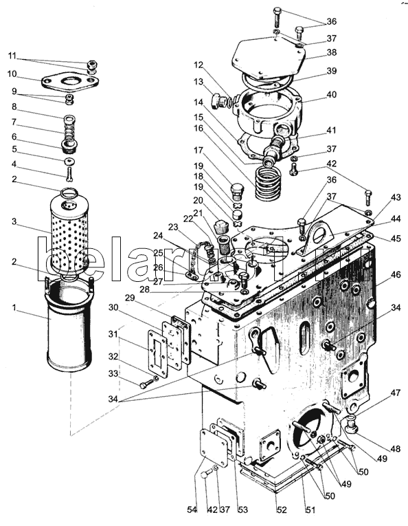 Каталог запасных частей к технике: МТЗ-1005. Бак масляный и фильтр