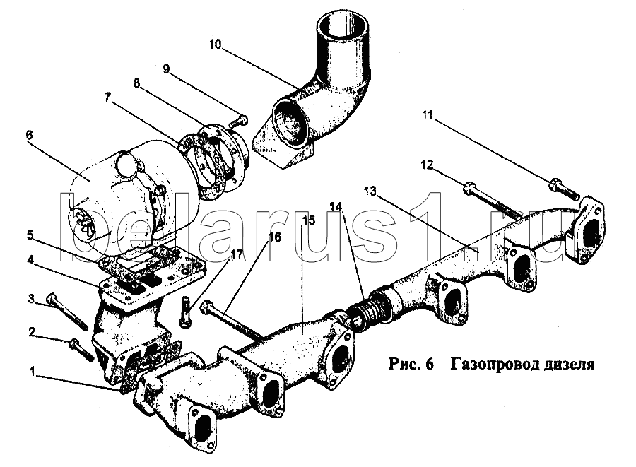 Каталог запасных частей к технике: МТЗ-1221. Газопровод дизеля