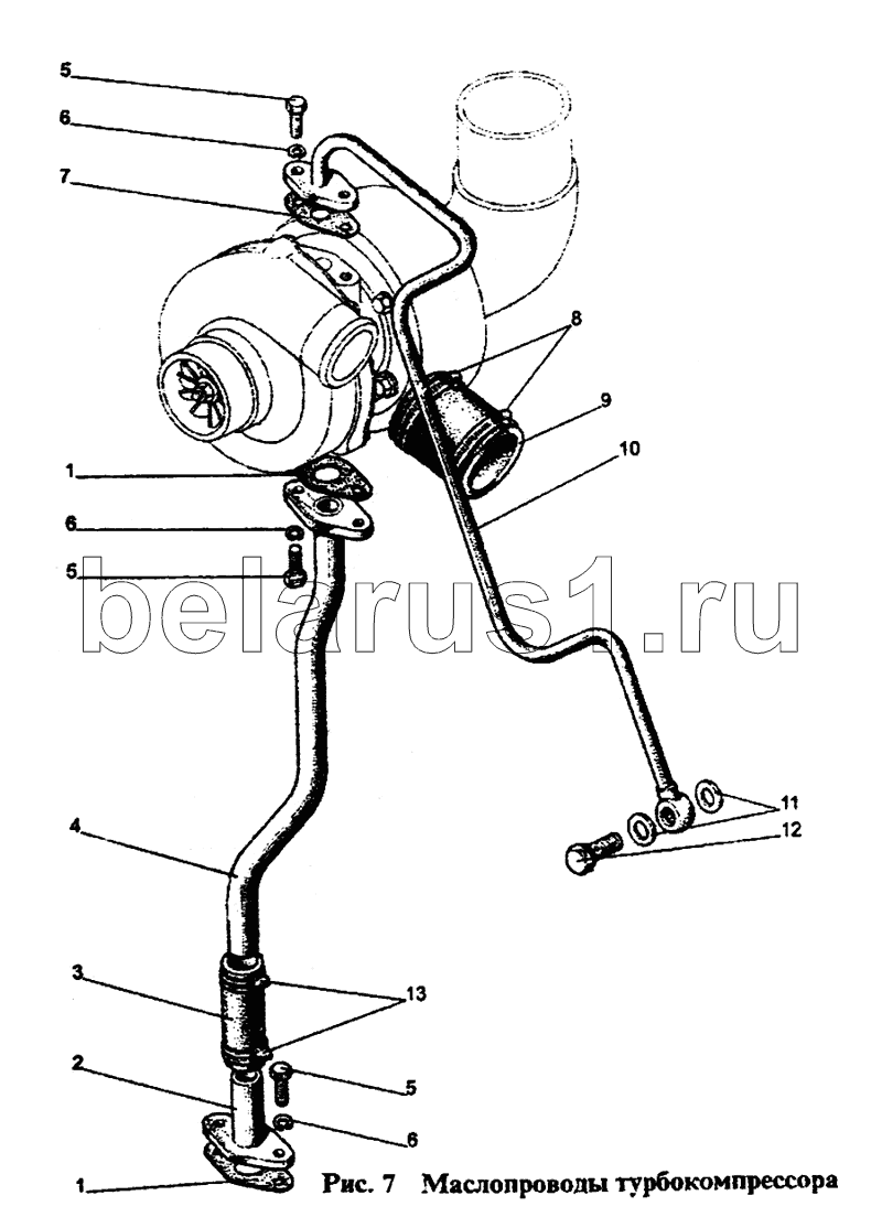 Каталог запасных частей к технике: МТЗ-1221. Маслопроводы турбокомпрессора