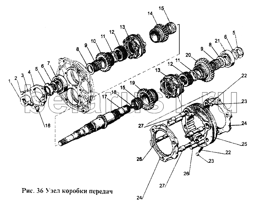 Каталог запасных частей к технике: МТЗ-1221. Узел коробки передач
