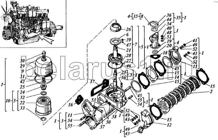 Каталог запасных частей к технике: РСМ Дон 1500Б. Теплообменник водомасляный с центрифугой