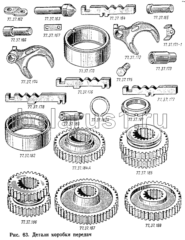 | 77.37.185 | 77.37.185 | Заказать | Блок шестерен III и IV передач |