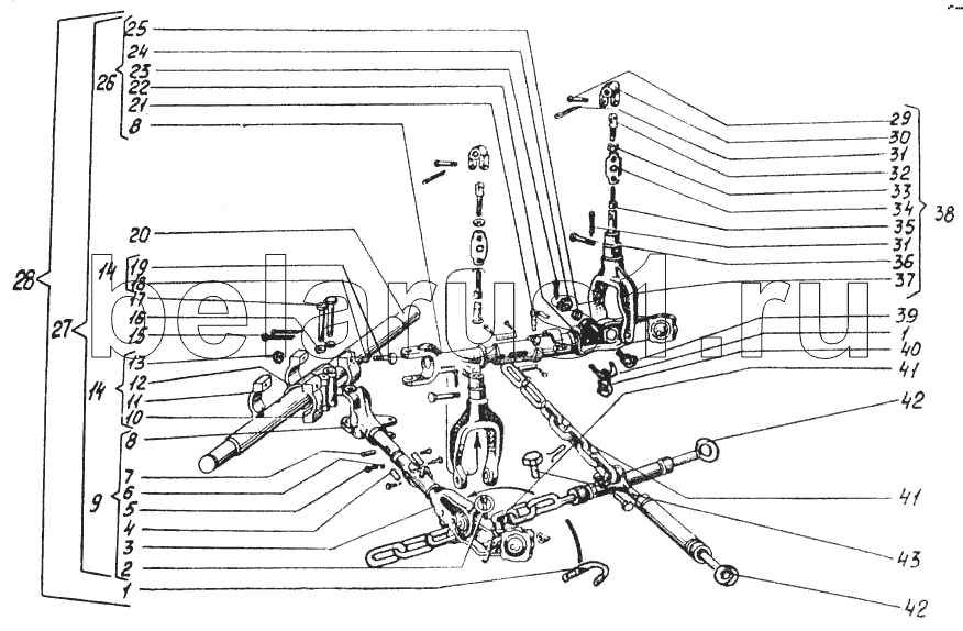 Каталог запасных частей к технике: ВгТЗ ДТ-75МВ. Механизм навески. Тяги и растяжки